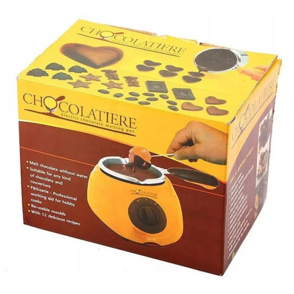 Комплект включает все необходимое для комфортного приготовления — контейнер для плавления, формочки, вилку и шпажки. Двухуровневый термостат поддерживает оптимальную температуру плавления, а прорезиненные ножки обеспечивают устойчивость прибора во время работы.