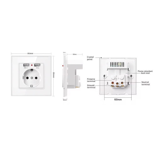 Стеклянная розетка SIXWGH с заземлением и USB-портами – это сочетание надежности, безопасности и удобства, которое сделает вашу жизнь комфортнее!