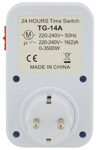 Розетка с таймером Programmer Timer TG-14A очень проста в установке и использовании. Один раз установите расписание, и таймер каждые сутки будет повторять заданную программу. С установкой расписания справится даже ребенок — для этого нужно всего лишь перевести переключатель, на нужный отрезок времени на 24-часовой шкале, в нужное положение. В то время, когда соответствующий рычажок включен, прибор будет работать.