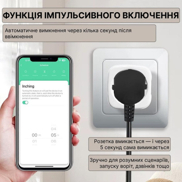 Смарт-розетка WiFi 20A — потужне рішення для віддаленого керування електроприладами, економії енергії та автоматизації вашого дому. Завдяки підтримці застосунків Tuya та Life, ви отримуєте повний контроль над технікою з будь-якої точки світу.