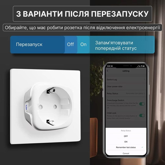 Налаштування поведінки після вимкнення світла (ON/OFF/останній стан)