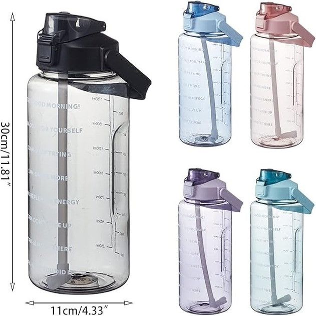 Спортивная бутылка для воды 2 литра с трубочкой и ручкой 9351, пластиковая бутылка с клапаном