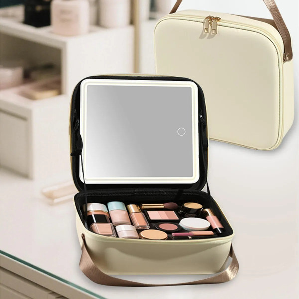 Элегантная сумка-органайзер для косметики с зеркалом и LED-подсветкой — стильное решение для хранения и удобного использования косметических средств. Встроенное зеркало с мягкой светодиодной подсветкой делает макияж комфортным даже в условиях недостаточного освещения.