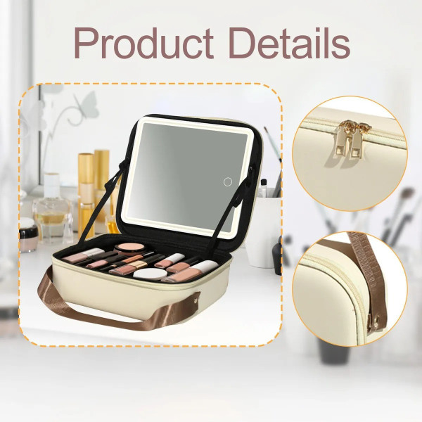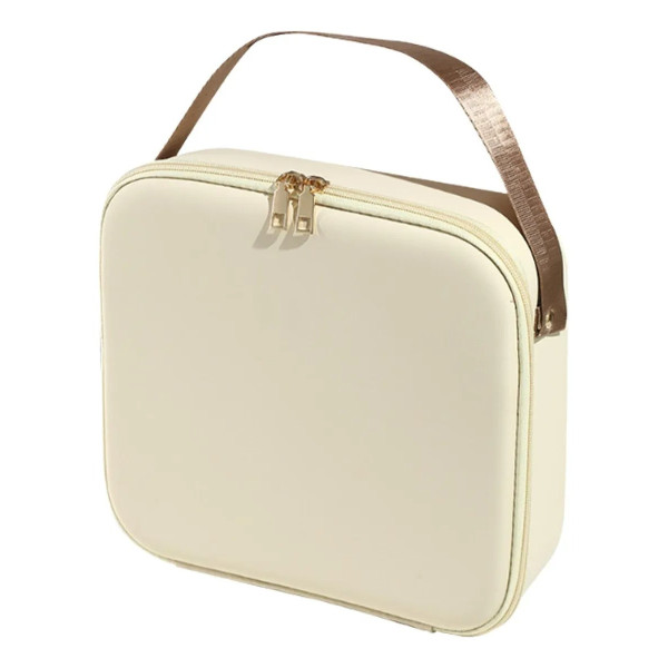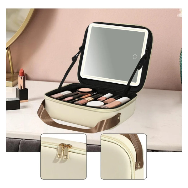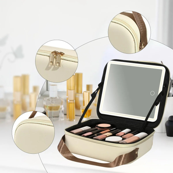 Сумка-органайзер для косметики с зеркалом и LED подсветкой, бежевая