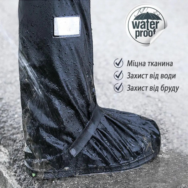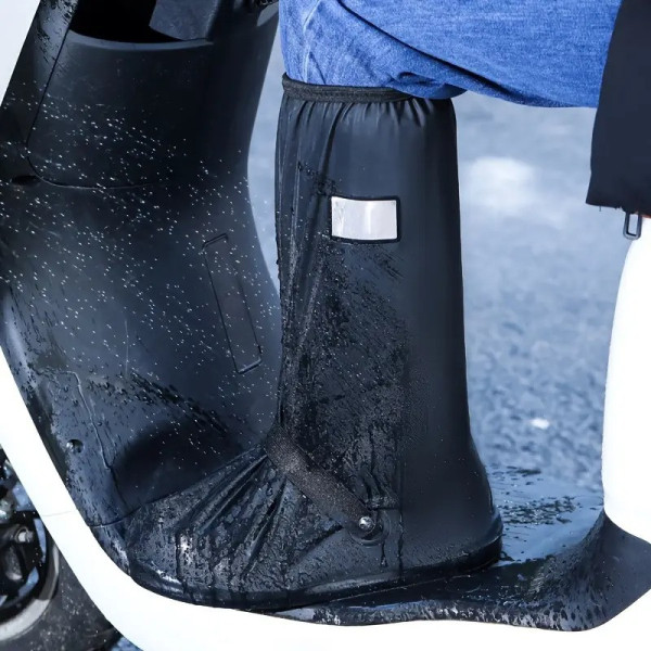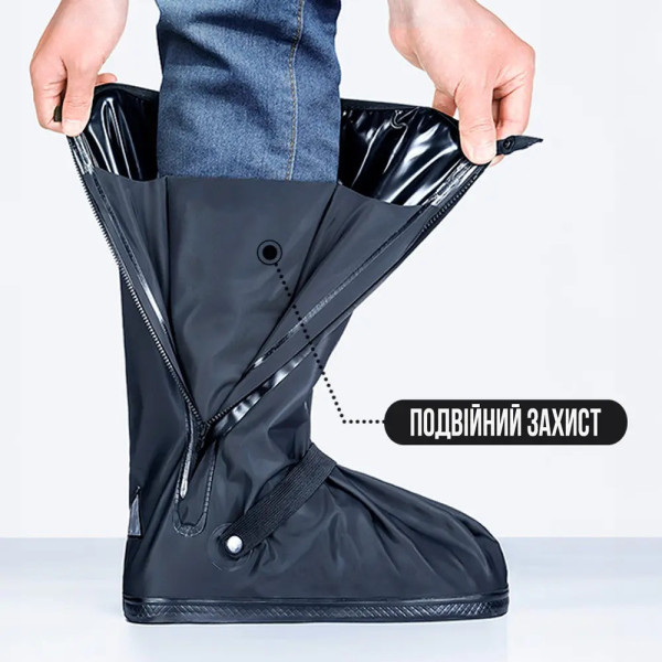 Изготовленные из прочного и износостойкого ПВХ-материала с защитой от ультрафиолета, бахилы устойчивы к повреждениям и долговечны в использовании. Герметичные пропаянные швы надежно соединяют верх с подошвой, предотвращая протечки. Антискользящая резиновая подошва обеспечивает устойчивость на мокрых и скользких поверхностях, а дополнительная ПВХ-вставка под молнией защищает ноги от попадания воды.