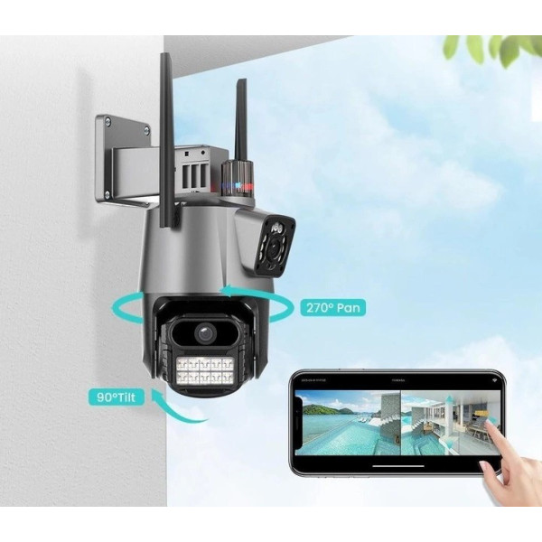 Уличная Wi-Fi IP-камера Icsee XM77 — это инновационное решение для круглосуточного видеонаблюдения и защиты вашей территории. Благодаря трем независимым объективам суммарным разрешением 12 МП камера обеспечивает сверхширокий угол обзора до 270°, создавая детализированное изображение без «слепых зон».