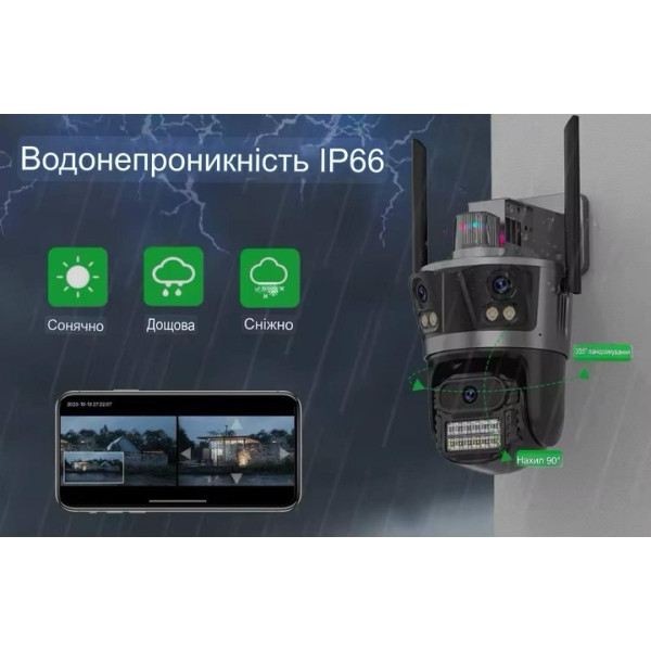 Уличная Wi-Fi IP-камера видеонаблюдения Icsee XM77 с тремя объективами 12 МП, ночным видением, интеллектуальным управлением