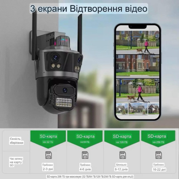 Три объектива — максимальный обзор: камера охватывает до 270° и обеспечивает более полное изображение окружающей территории.