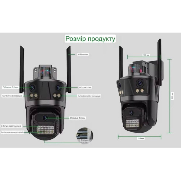 Двухрежимное ночное видение: цветной и инфракрасный режимы для надежного наблюдения даже в полной темноте.