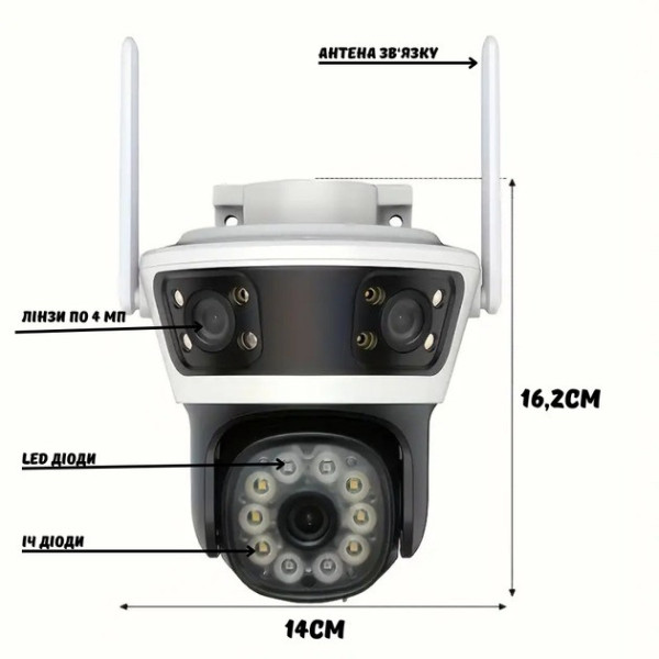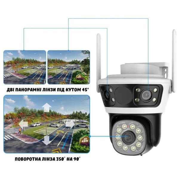 Уличная Wi-Fi видеокамера Q70 с тремя линзами 2+2+2 Мп, ночным видением, датчиком движения и поддержкой LAN
