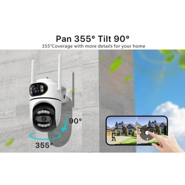 Уличная WiFi IP-камера Q2 PTZ двойная с двумя объективами 8МП, онлайн видеонаблюдение