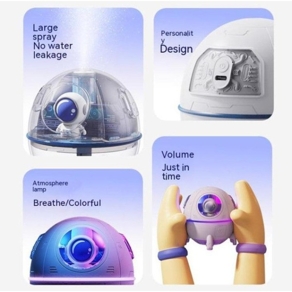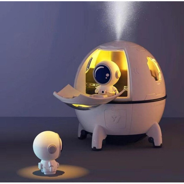 Увлажнитель воздуха с ночником в виде космонавта — это не только практичное устройство для поддержания комфортного микроклимата, но и элемент интерьера. Его необычный дизайн в форме космического корабля сразу привлекает внимание и отлично подходит для спальни, детской комнаты или офиса.