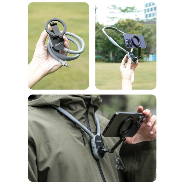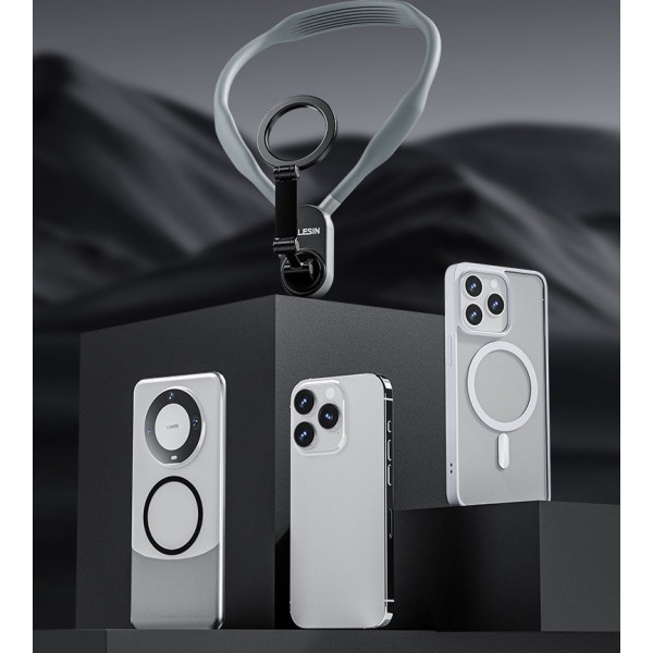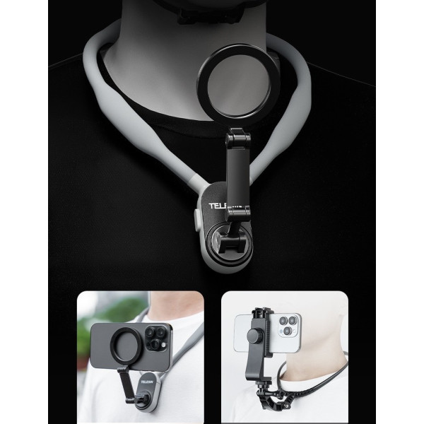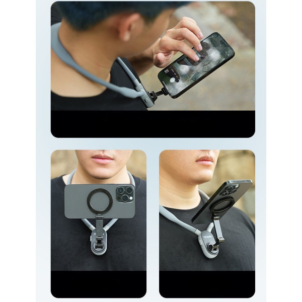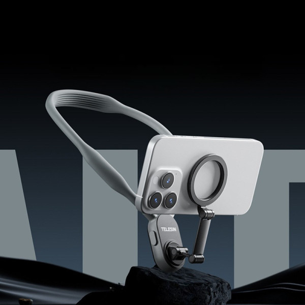 Тримач для смартфона TELESIN MNM-001 з функцією MagSafe дає змогу швидко та надійно закріпити телефон на шиї, звільняючи руки та забезпечуючи знімання від першої особи. Магнітне кріплення дає змогу легко перемикатися між горизонтальним і вертикальним режимами, а також вибирати різні кути знімання.