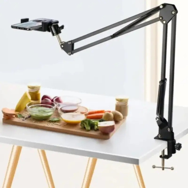 Витончений дизайн: підставка має обертання на 360 градусів і обладнана затискачем на довгій гусячій шиї, який можна повертати на 360 градусів для регулювання кута. Гнучке кріплення можна вільно згинати та складати для зручного перегляду пристрою під будь-яким кутом.