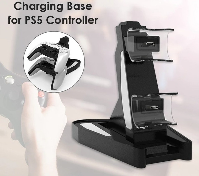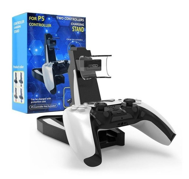 Ця зарядна станція — практичний аксесуар для власників 5, який забезпечує лад і зручність під час зберігання та заряджання геймпадів.