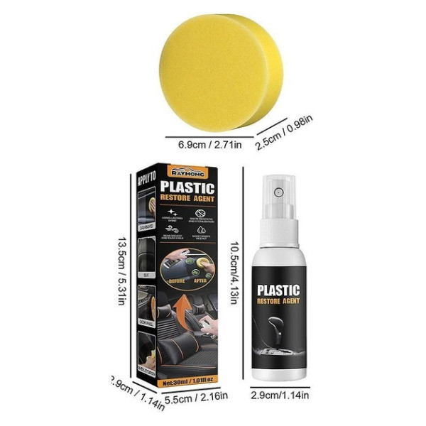 JoyPro Plastic Restore Agent — це професійний спрей для відновлення кольору та блиску пластикових деталей автомобіля. Засіб глибоко зволожує й живить поверхню, захищаючи її від вицвітання, забруднень і зношування. До комплекту входить зручна губка для рівномірного нанесення та полірування, що дає змогу досягти професійного ефекту за кілька хвилин.