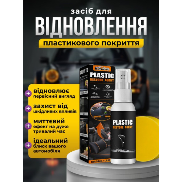 Засіб для відновлення пластику авто JoyPro Plastic Restore Agent, спрей 30 мл із губкою