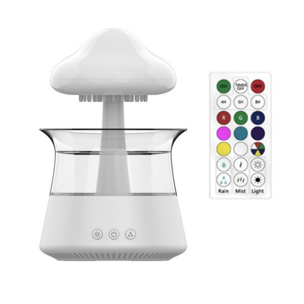 Головна особливість цього зволожувача — ефект дощу, що капає як справжній дощ. З хмари випадають краплі води, створюючи природний білий шум, який допомагає розслабитися або навпаки сконцентруватися на роботі, читання, навчанні.
